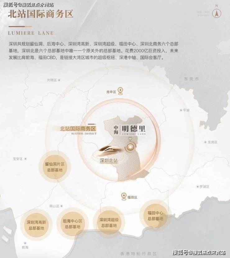 2)北站国际商务区,深圳六大总部基地之一,高投入打造国际化城市会客厅;项目距离深圳北站直线约2公里,所在民治街道是龙华目前发展的核心区域;