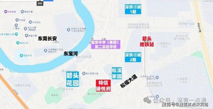特信臻悦府备案名:林曦艺境花园,地处深圳西部松福大道与朗碧路交汇处,紧邻地铁11号线终点站碧头站,项目北侧为茅洲河。