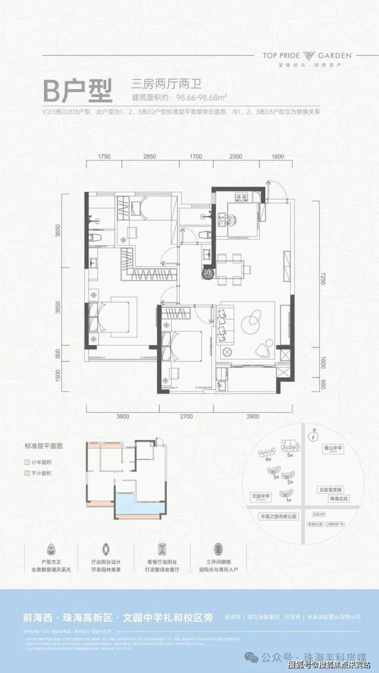 商业配套醇熟,金鼎市场、宝龙城商业综合体、北站宝龙广场等满足日常消费与高端购物需求。医疗方面,珠海高新区人民医院、中大附属妇女儿童医院保驾护航;生态上紧邻半圆之园公园,推窗见绿,宜居属性拉满。