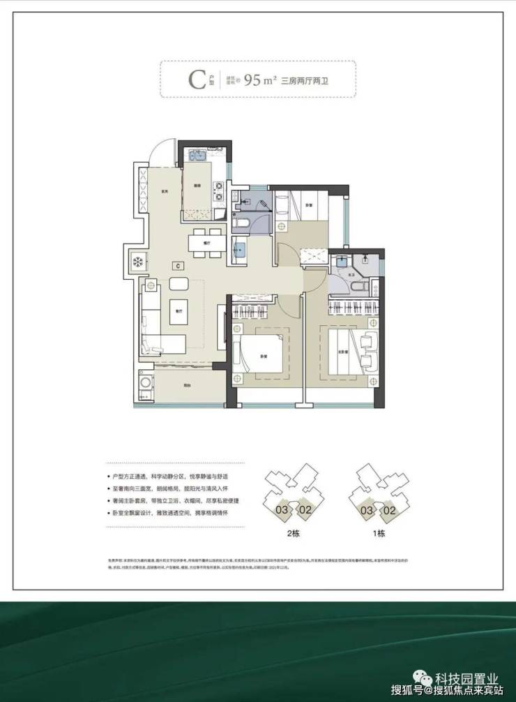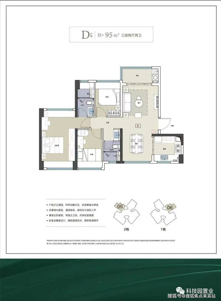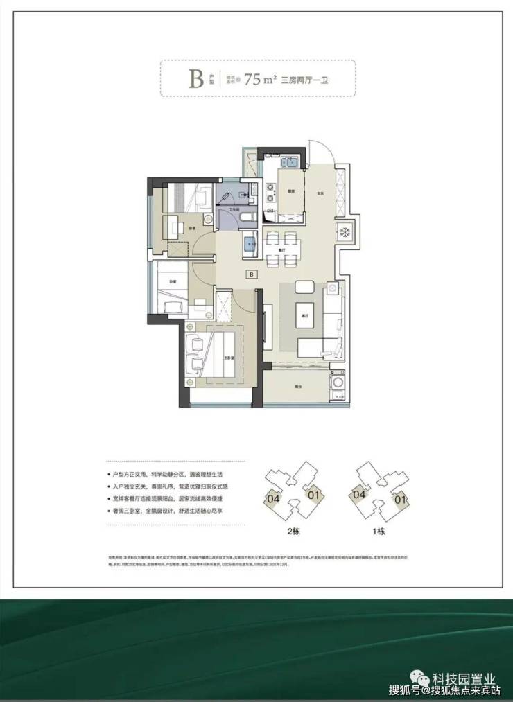 面积为75-120㎡三至四房,使用率超80%,高赠送,三开间朝南。