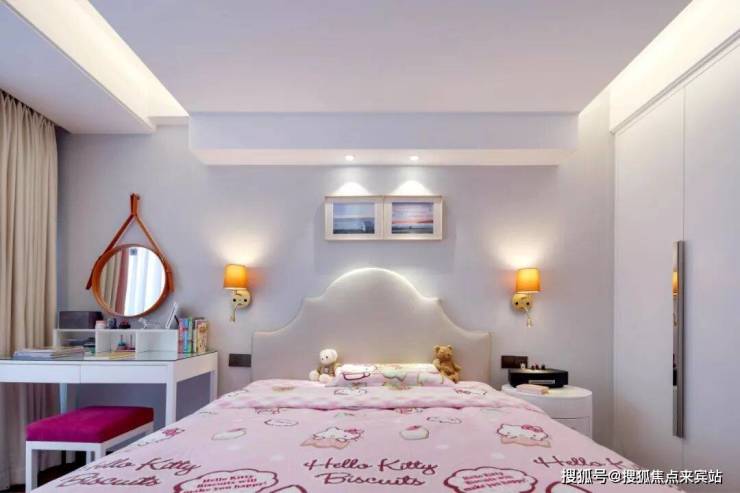 女儿房混合着各种糖果色,有节制的卡通造型,在可爱之余,绝不幼稚。