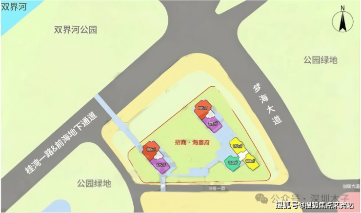 项目位于前海桂湾03开单单元01街坊,梦海大道与桂湾一路交汇处南,是前海开发最早、配套最完善且城市面貌最新的片区,且项目位于桂湾的最北端,与宝中仅一河之隔,可以拥享前海宝中双优质配套。