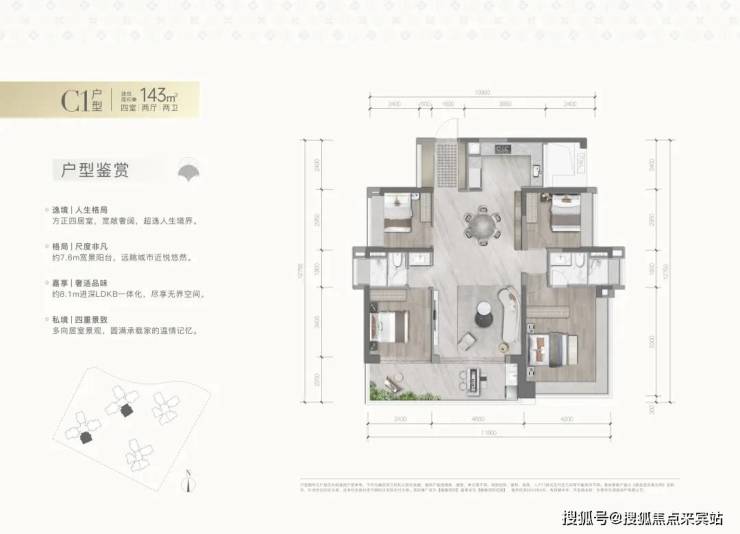 望云——建面约143㎡的四房
