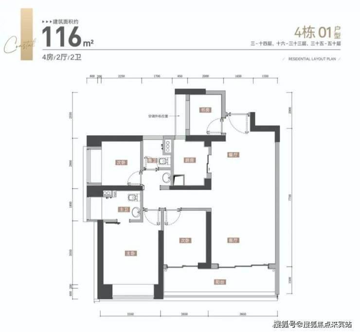 而约120㎡的横厅四房二卫户型设计得挺优秀,非常符合年轻人的口味。美中不足的是阳台连着主卧而不是餐厅,不够开阳。次卧看着足够大,厨房有小阳台加分,在这么多批「海岸城」项目中,这个户型也算是比较了得的一款。