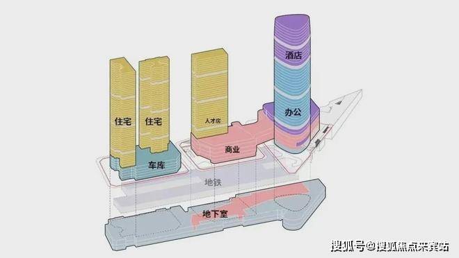 项目总建筑面积32万m²,由3栋住宅(1栋人才房,两栋普通商品房),1栋写字楼+酒店,约4.6万平米购物中心构成,可售房源418套,精装交付,地面五六层停车场,车位1346个(地下886个、地上460个),车位比约1:1.1。