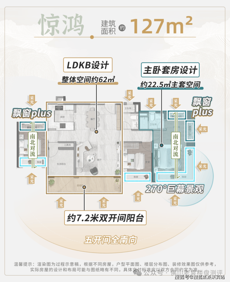 惊鸿|建面约127㎡(2梯3户,南向五开间,全区仅32套):