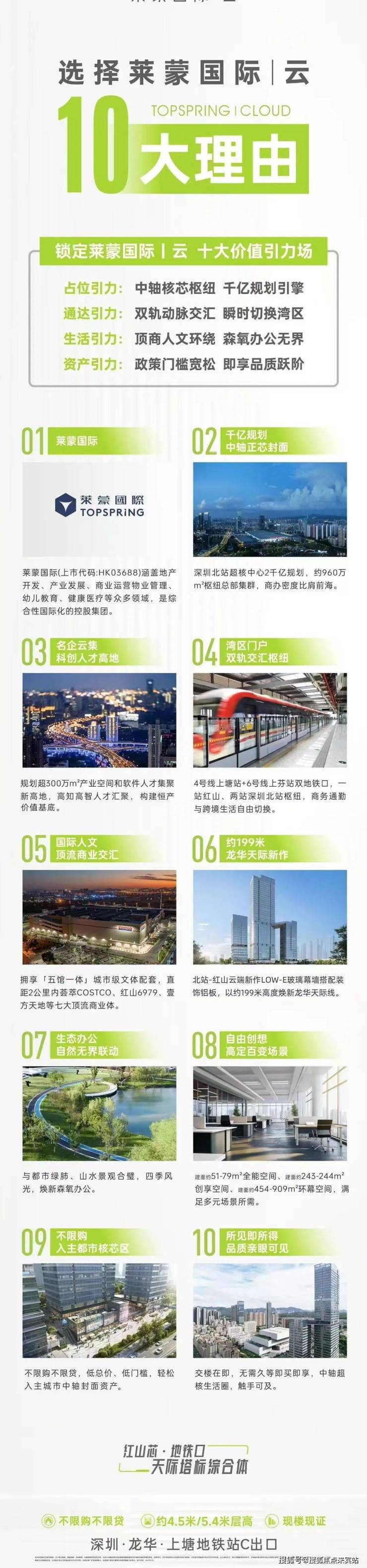 在龙华核芯中轴的璀璨坐标上,【莱蒙国际丨云】以天际塔标综合体之姿,鼎立红山-上塘片区,紧邻北站超高核,坐享“十四五”规划中央活力区与龙澜智造走廊双重发展红利。