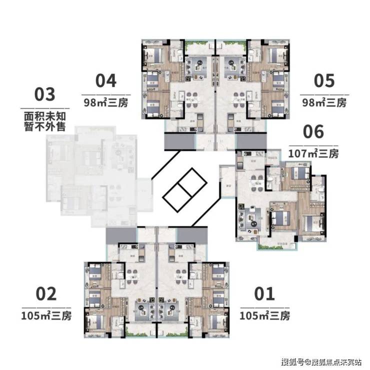 总体上来说,06(107㎡)>01(105㎡)>02(105㎡)>05(98㎡)>04(98㎡)。