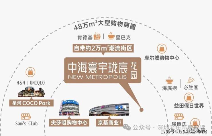 地铁三站到大运,可达星河COCO Park;一杯咖啡的时光,驾车轻松畅达摩尔城购物中心、万科里、万科广场等大型购物中心;约15分钟内潮流商圈任由选择,佳华沙湖旗舰店集中商业(在建中)、锦龙天虹商场、益田假日世界、京基24H开放式潮流商业街区(在建中)、尖莎咀购物中心等。