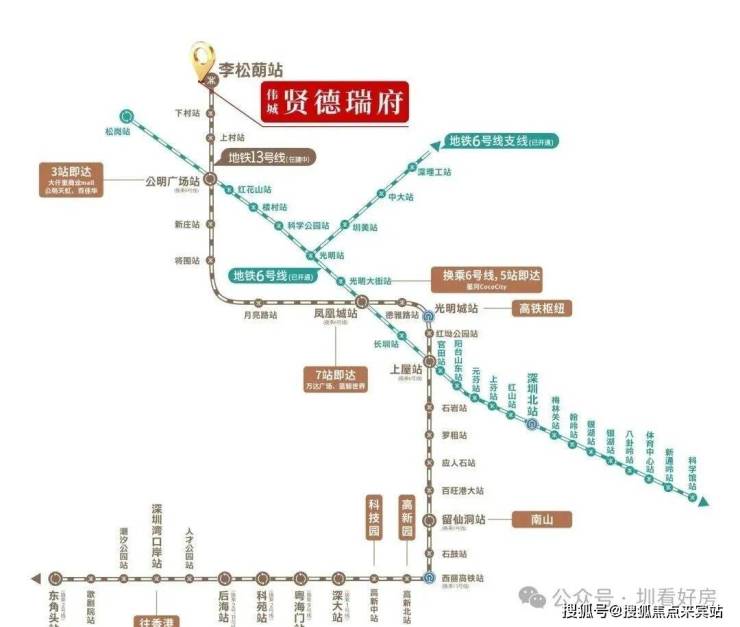 李松蓢站(原公明北站)直达南山通达全城。(建设中,预计过几个月全线开通);地铁26号线:国际机场专线纵贯深圳西部中心(规划中);地铁6号线:光明线直达龙华、福田、罗湖三区。。