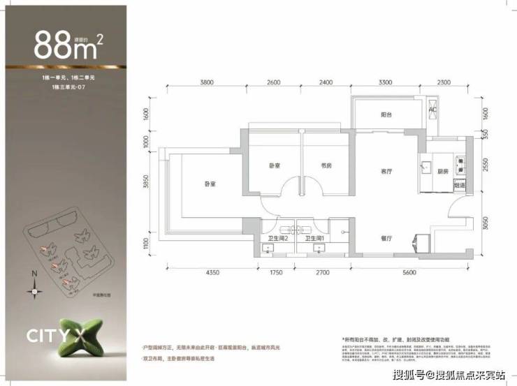 88㎡的3房2卫,折后总价315-323万/套,折后单价3.57-3.66万/㎡。