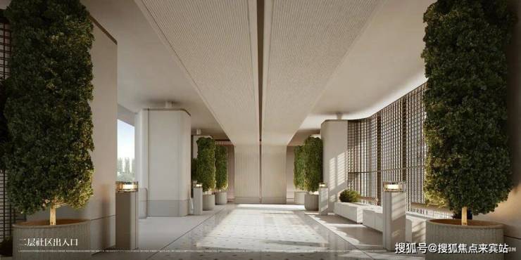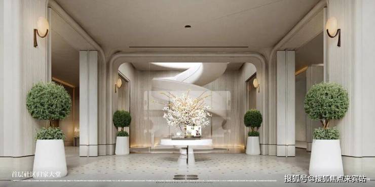 三重归家大堂,首层是双社区隐奢大堂,二层是花园大堂、私邸归家大堂。私邸归家大堂,尺寸阔绰,设计同时兼顾艺术感、空间感,通过多维度的视觉对空间的高度、宽度、深度调整,自然而然营造出一种精奢的归家氛围体验。