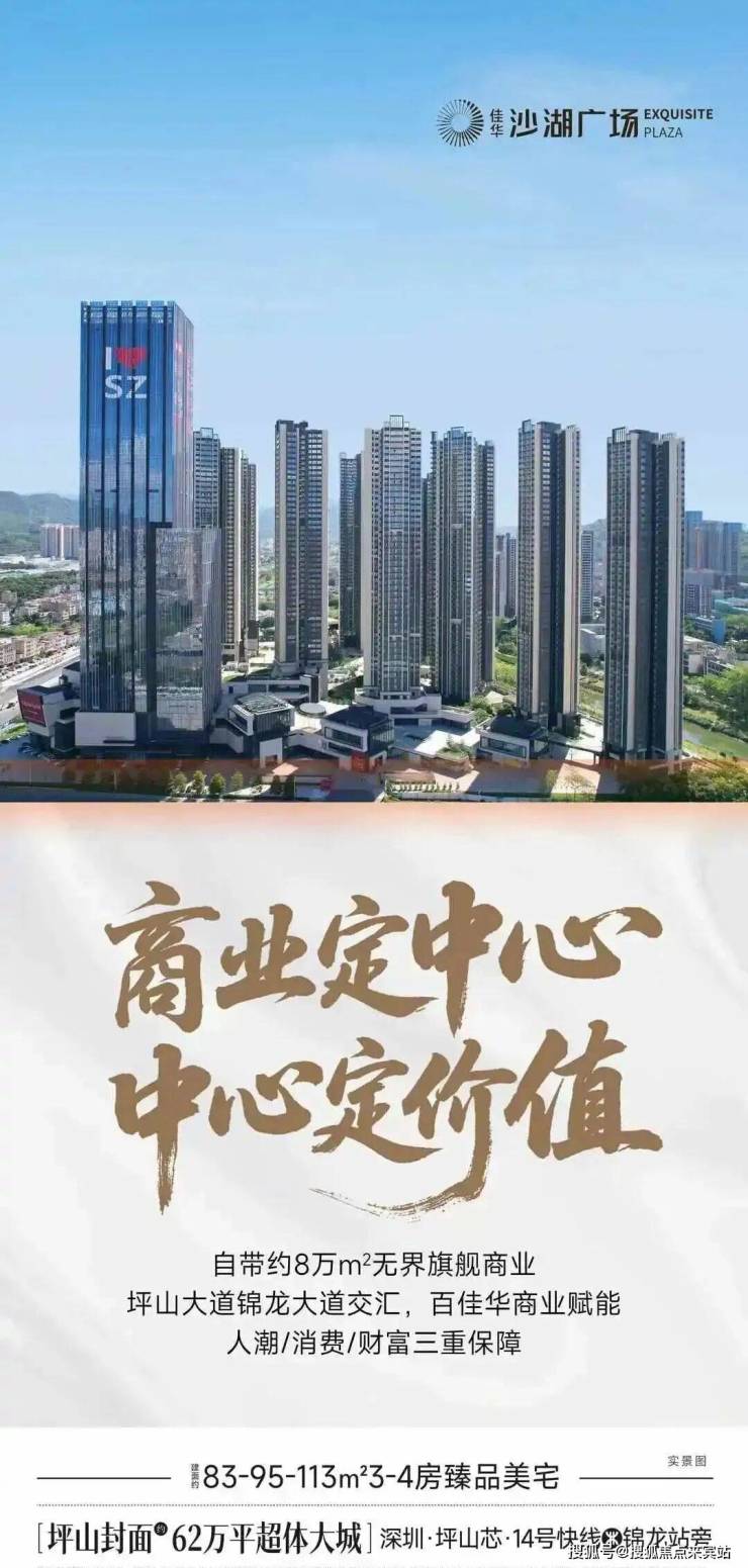 佳华沙湖广场项目位于坪山区坪山大道与锦龙大道交汇处西北角(在建14号线锦龙站旁),项目是包含商业、办公/公寓、住宅、幼儿园于一体的大型综合体,总建面超62万㎡。隔壁是深业国际东城、力高君御国际等住宅区。