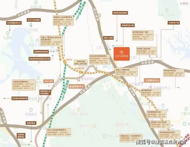 百万旧改,焕新活力 ,项目荣属深圳十三五规划城市更新重点片区,汇集15大旧改项目,石岩水田旧村、总部经济园更新项目建筑面积均超20万㎡,片区拆除用地总面积超百万平米,京基、宏发等地产品牌抢滩。旧改助推公共配套、基建工程提速建设,区域价值先机,抢占正当时