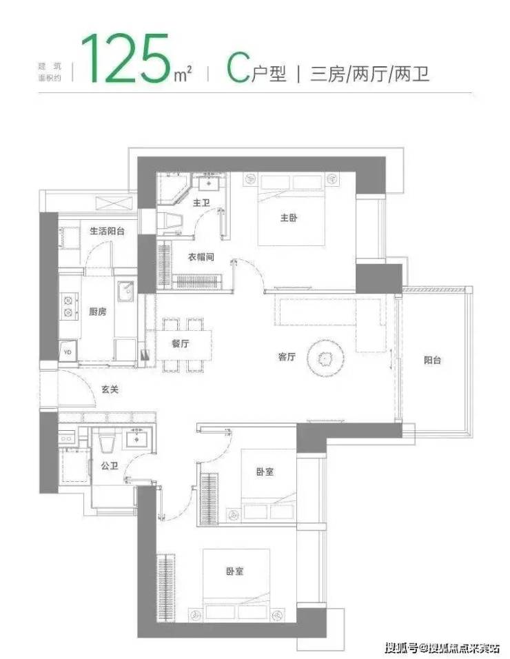 ③ 125㎡3房2卫:809套(A户型646套+B户型99套+C户型64套)
