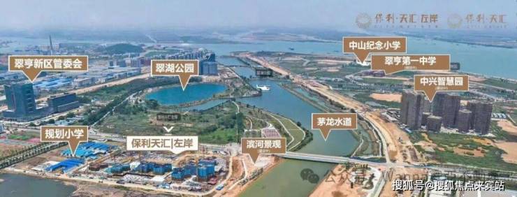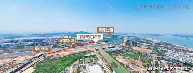 保利天汇左岸:全中山最近深圳!保利天字系平层,2T4户设计,通风采光极佳!北临翠湖公园,东望茅龙水道,位置优越!