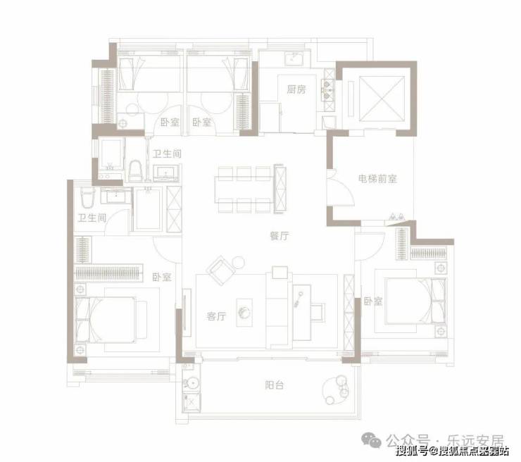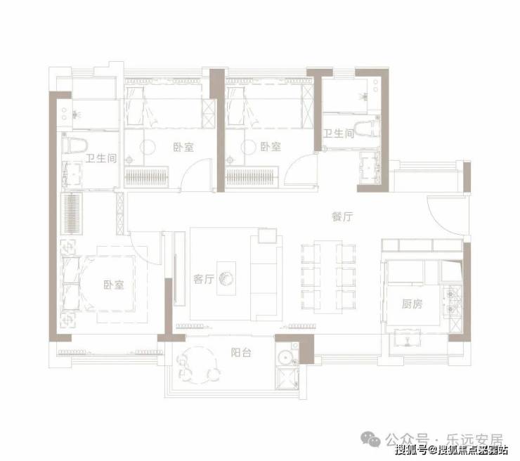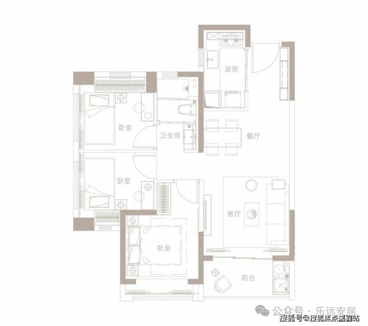 面积:79-85㎡3房1卫,91-95㎡3房 2卫,125㎡4房2卫