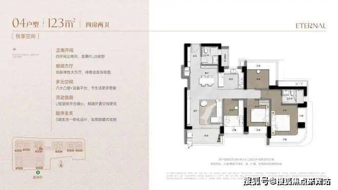 新规产品,销售使用率90%+,近1:1梯户比,大户型双电梯独立电梯厅入户,北区2梯2户,双电梯独立电梯厅入户,南区3梯4户。
