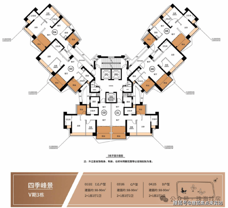 ②产品二:89.08㎡南向三居、珠海中心、会展中心,大剧院等城市地标尽收眼底。