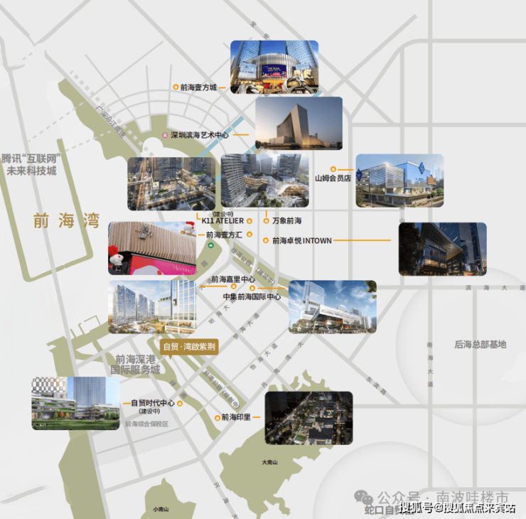 湾啟紫荆府,位于南山前海深港合作区妈湾15单元02街坊,港城路与航海路交汇处西南侧,前海划分为3个片区桂湾、前湾和妈湾,桂湾是金融区,前湾类似政务区,妈湾是比较纯粹的居住区。
