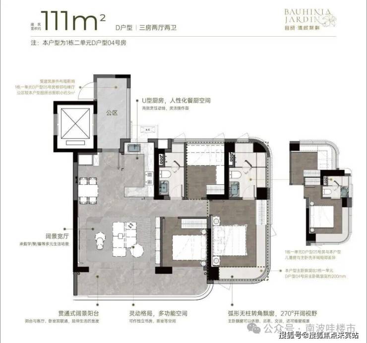 『湾啟紫荆府』项目为带精装修交付,居家必备的家具、家电、设施都是交付即拥有,营销中心设置有111㎡-121㎡-142㎡三个展示样板房,具体精装修交付标准及样板房创意展示空间可参考下图: