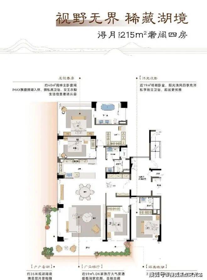 【创新户型·传世墅居标杆】全国首创“三首层五花园”与“三首层六花园”设计,打破传统地下室阴暗潮湿局限,通过约3000万地势抬高工程,实现五层全明空间,最高使用率达300%。建面约360㎡/310㎡临湖院墅,首创「五花园」满足长辈种菜、儿孙玩闹需求,地下室如首层般直面湖景,6米挑空+超9米进深+12米面宽,可打造酒窖、影音室等多功能厅;三楼主人套房约126㎡配270°星空露台,顶楼70㎡露台支持电影、烧烤、露营等私密场景,配合0.45窗墙比的公建化立面,让湖景渗透每个生活空间。