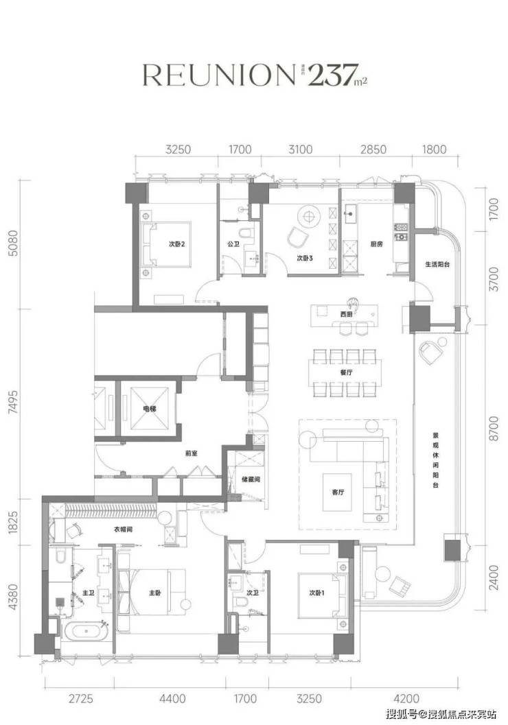 4房2厅3卫设计,全屋通透明厨明卫,豪气阔绰的客餐厅超大通厅,带来云端墅居的空间感。