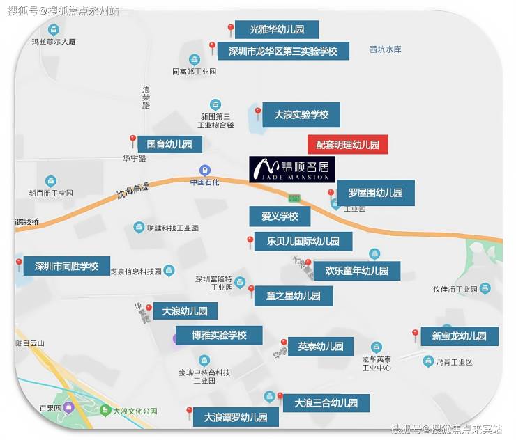 项目自带9班制大浪第二幼教集团明理幼儿园(已开学),周边3公里范围内另有龙华区实验幼儿园(省一级)、爱义幼儿园等12所幼儿园,学位供给充足。