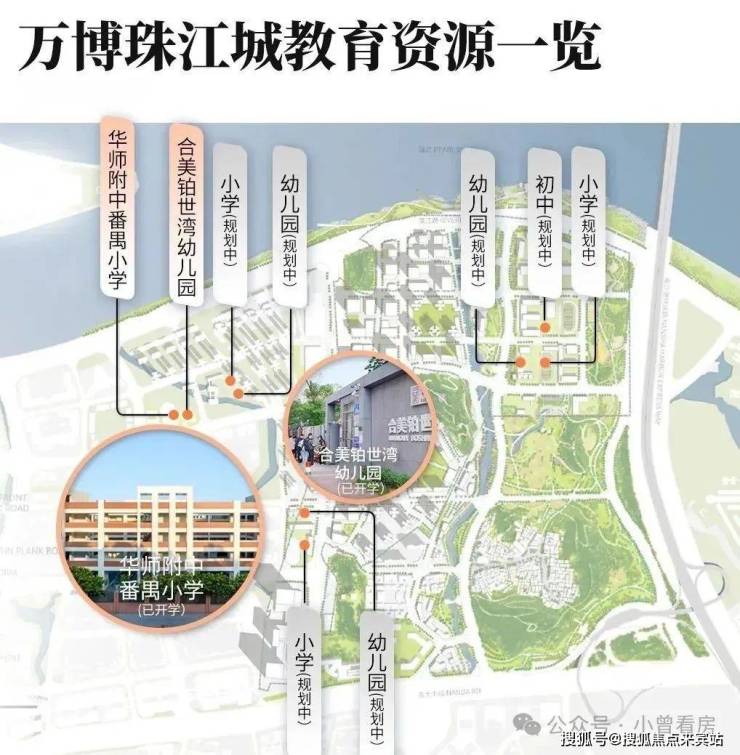 其中配置24班华师附中番禺小学及12班公立合美铂世湾幼儿园(已开学)