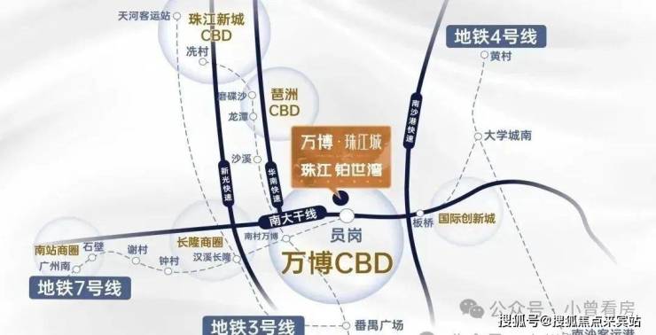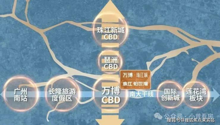 项目地处广州城市中轴&南大干线经济带双中轴交汇点——万博核心,南北CBD塔尖资源一脉尽享。