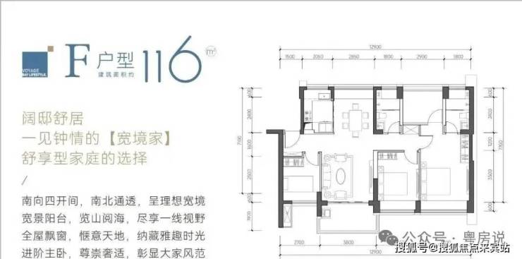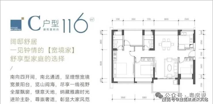 116㎡的4房2厅2卫,C户型,设计的是竖厅南北通透格局,餐客厅一体化设计,客厅3.8米开间,四开间朝南,4个卧室分别做到了主卧17.85㎡/次卧11.4㎡/次卧9.3㎡/次卧8㎡(包含墙体飘窗),都不用搭配飘窗做床,U型厨房,卫生间干湿分离,得房率约:93.13%(包含赠送),阳台主朝西南、东南或正南向。