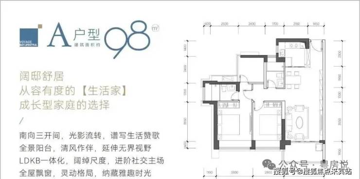 98㎡的3房2厅2卫,设计的是经典竖厅格局,LDKB一体化设计,客厅3.6米开间,三开间朝南,动静分区,3个卧室分别做到了主卧13.69㎡/次卧11.62㎡/次卧5.76㎡(包含墙体飘窗),都不用搭配飘窗做床,L型厨房,卫生间干湿分离,得房率约:89%(包含赠送),西南、东南或正南朝向。
