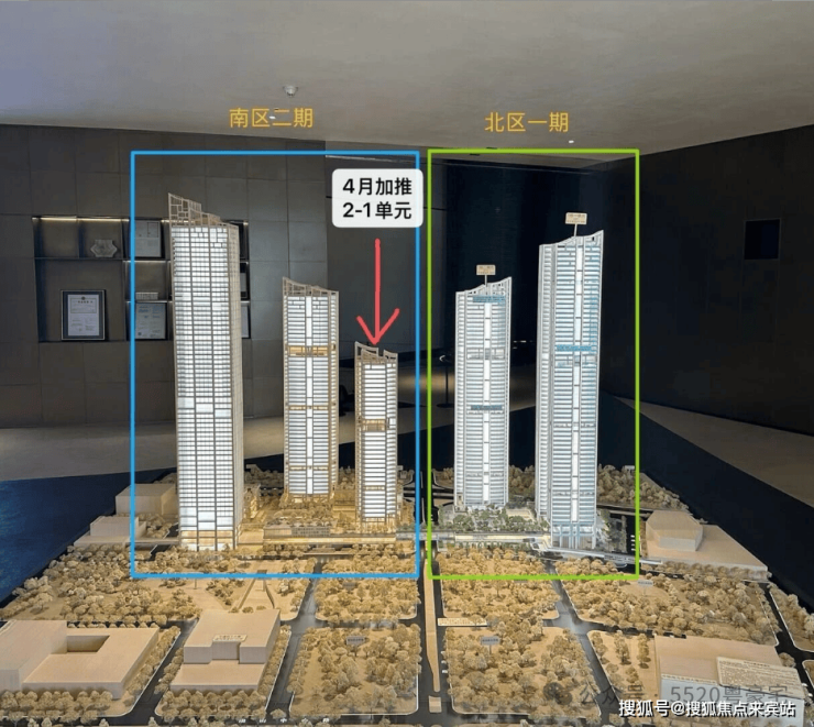 【总户数】南区有2栋住宅和1栋商务公寓,预估5栋楼共计900户以内