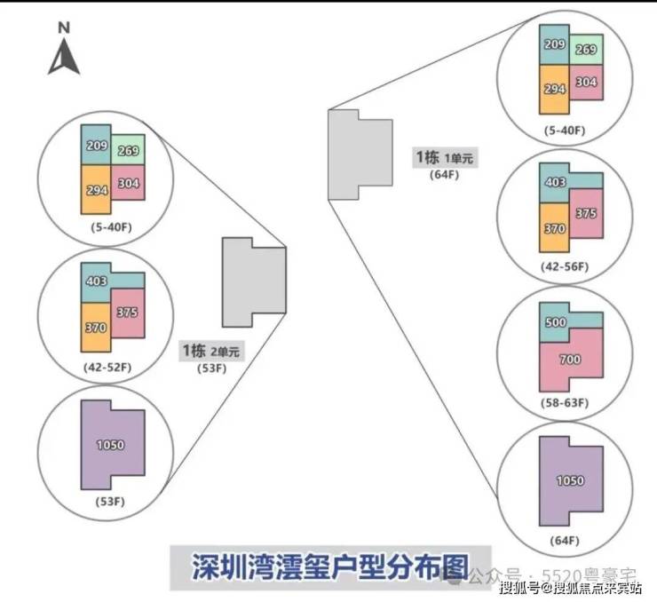 北区的1栋和2栋户型分布图(可对比)