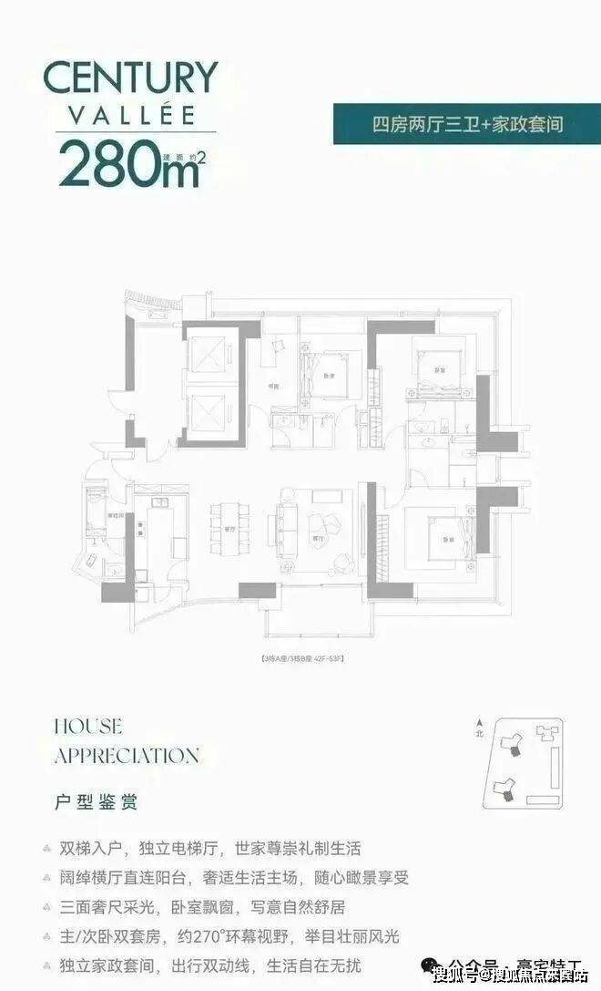 前两次都是公寓,现在住宅首发!还是定位相当高端的纯大平层而且还是无敌景观视野,8梯3户,233㎡/280㎡配备两个独立电梯,386㎡双梯设计,实在任性!