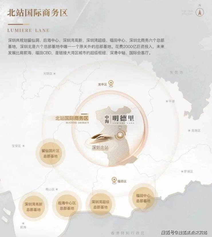2)北站国际商务区,深圳六大总部基地之一,高投入打造国际化城市会客厅;项目距离深圳北站直线约2公里,所在民治街道是龙华目前发展的核心区域;明德里,于双区之中,在重点产业走廊之上,区域优势得天独