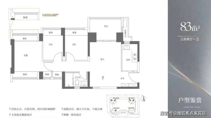 83㎡3房1卫,主卧跟客厅南北通