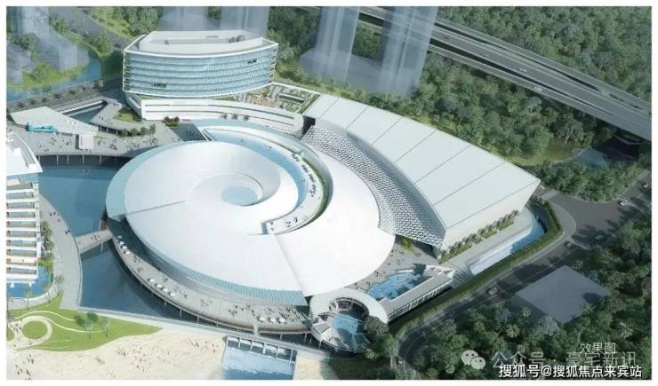 外观为“鹦鹉螺”,由日本佐藤综合计画设计,以海洋动物展示、科技演艺、多媒体互动科普为主体,近享国际一流海洋主题公园,动物约200多种,融合全球最大青蓝洞景观。