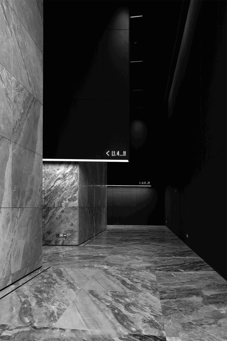 古典式标识系统与“Prada绿”的语言碰撞,隐藏式走道地灯与原木柔和碰撞,升华了归来的仪式感。▽