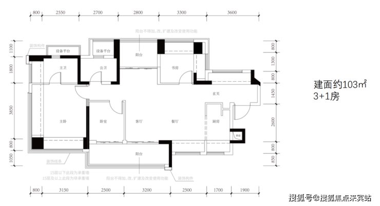 创新型成长户型,适应家庭不同阶段的需求变化,拔墙设柱设计、分户S墙、创新LDKC内外亲子双区等