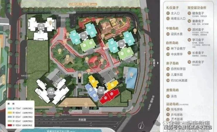 户型包括75-80-83-85㎡的三房两卫,105㎡的四房两厅两卫,使用率高达97%-104%。