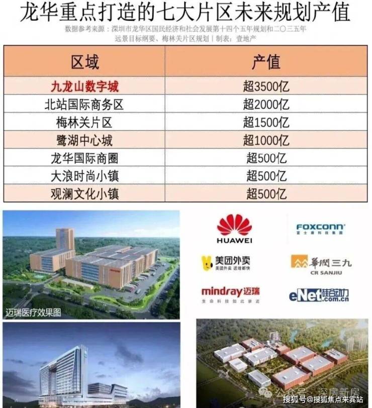 观澜虹吸龙华70%产业,覆盖1700多家企业;华为、迈瑞、华润、汇川科技、稳健医疗、富士康、中光电、沃特沃德等龙头企业纷纷进驻(信息来源