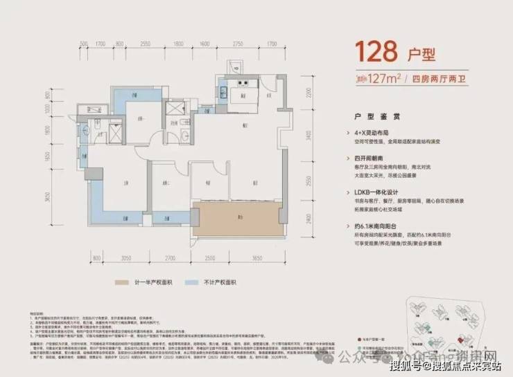 四开间南向采光,约6米开间阳台,客厅与次卧可拓展,双L型飘窗,多面采光通透舒适,开阔视野 、无遮挡、看公园景观