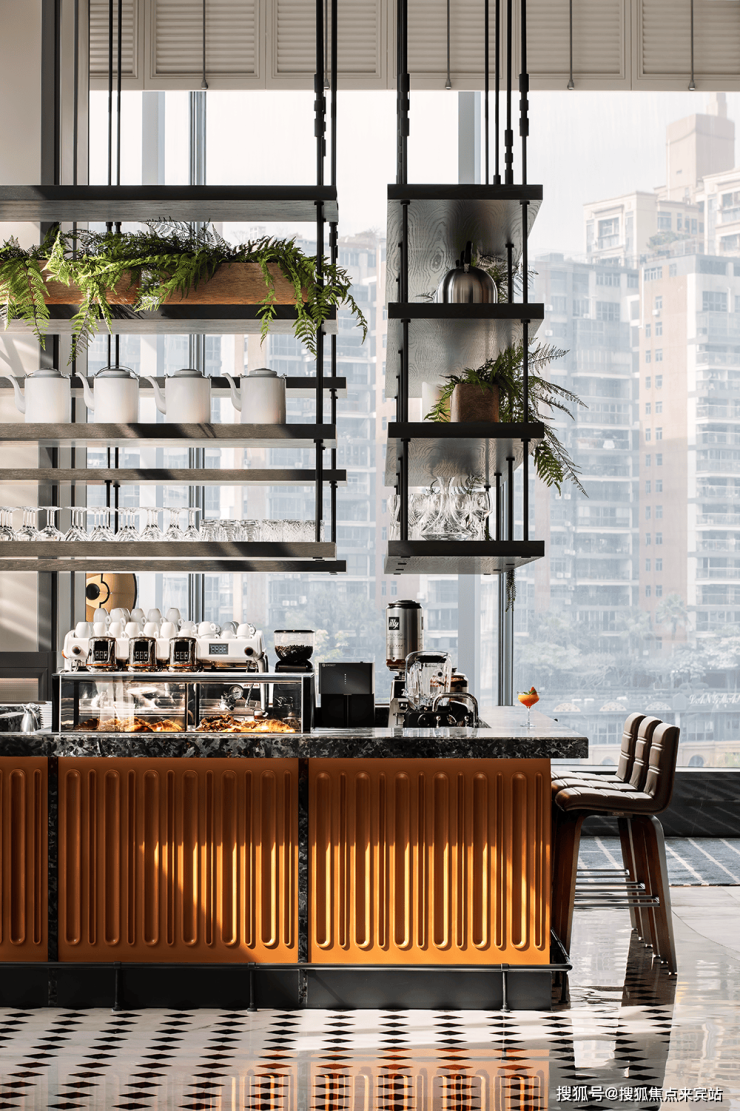 酒店一层的Le Scoop冰雪甜吻餐厅将室內活动延伸至戶外花园,让建筑与自然相融合,让自然的气息与烟火之间建立交汇相洽。让城市与建筑空间更加贴近,增加空间停留点,让顾客在探索过程中获得乐趣。花园里的下午茶,亦或漫步感受微风,岭南的悠闲法式慵懒相生相伴。