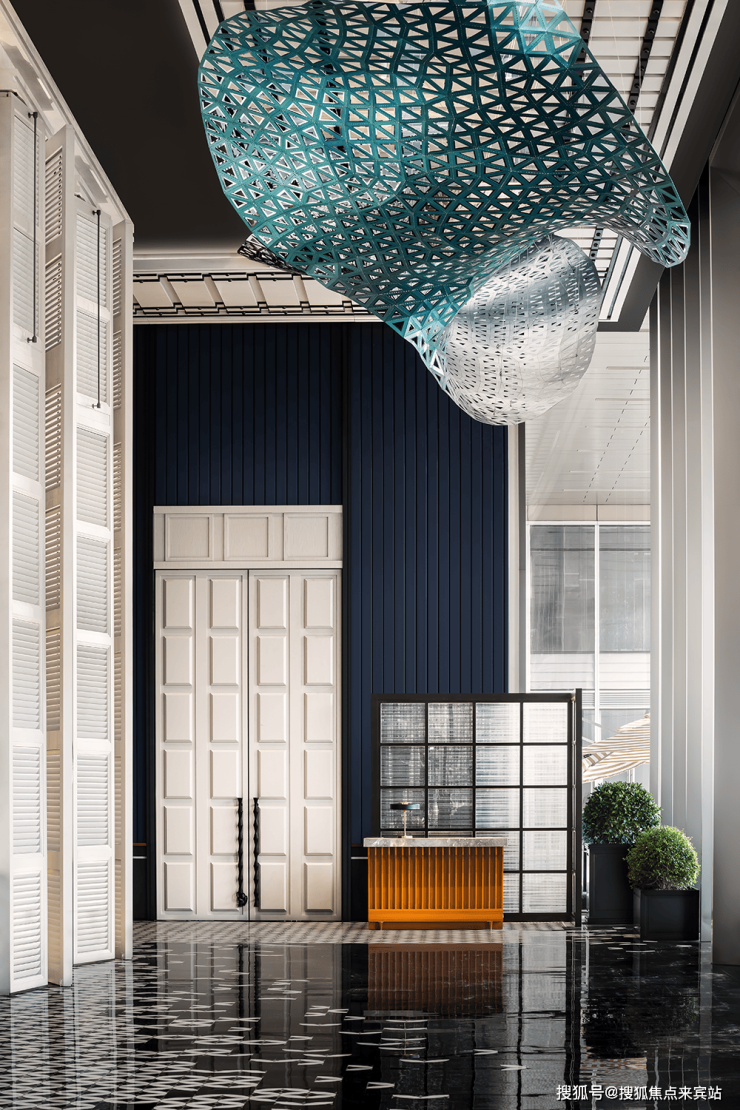 深圳前海华侨城艾美酒店是深圳首家艾美酒店,设计以欧式慵懒假日为灵感,融合岭南文化,让入住的每一位顾客享受假日般的惬意时光。酒店首层大堂以“ 浪心古城”为主主题,设计元素在使用了经典的法式线条的同时,配以嶺南元素,整体色彩以艾美65%的黑白灰为色调展开,仿如穿越至岭南古城的街角。