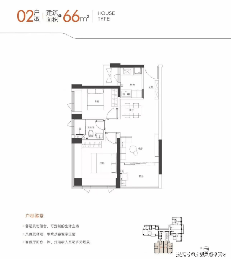 其中,建面约66㎡两房属于紧凑实用的刚需户型,客餐厅阳台一体,动线顺畅。