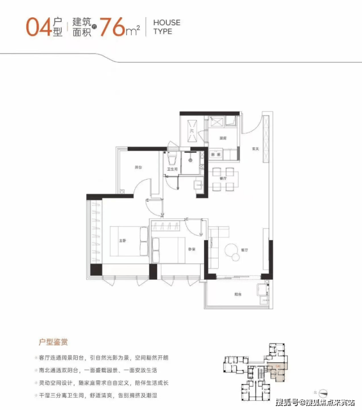 建面约76㎡户型,属于空间感更舒展的刚需进阶户型,可以改三房,适合预算不多的刚需家庭上车。