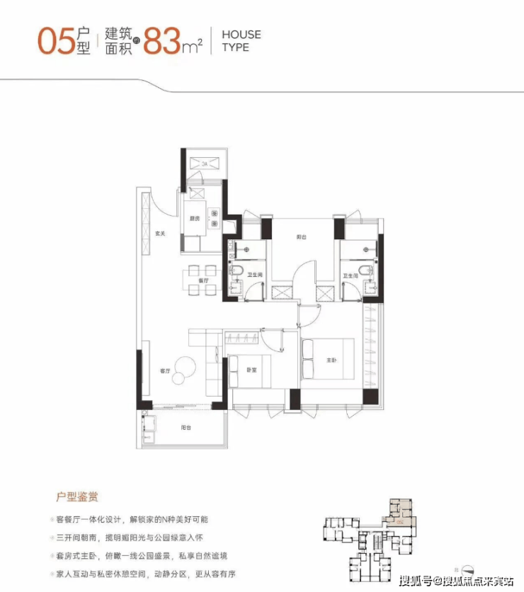 建面约83㎡户型是刚需里的“舒适款”,设计上兼顾了功能性和居住品质。