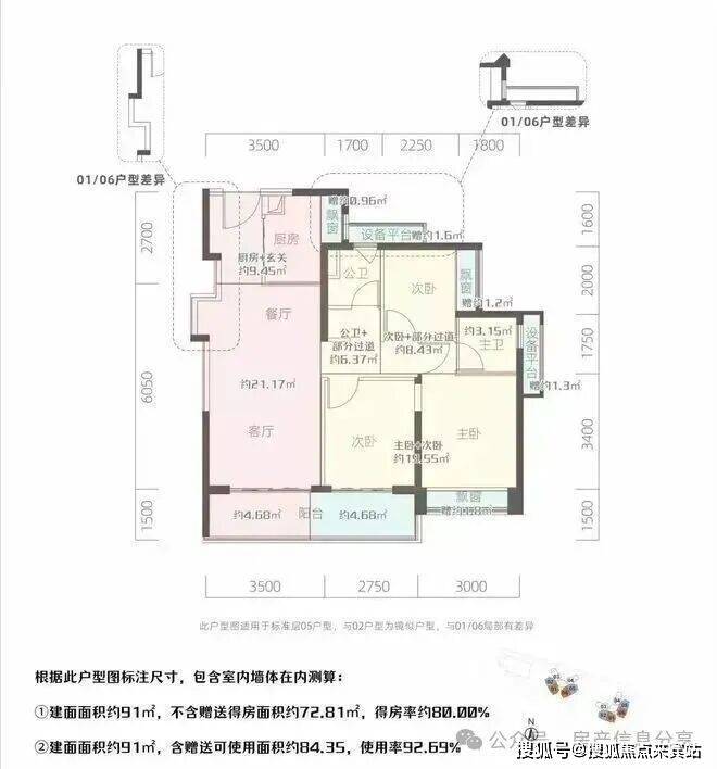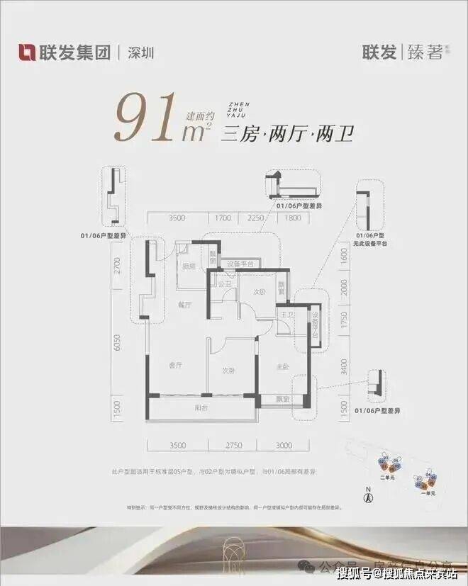 91㎡的3房2厅2卫,设计的是经典竖厅格局,客厅3.5米开间,三开间朝南,3个卧室分别是3米/2.75米/2.25米的宽度,U型厨房,公卫三段式分离设计,得房率:92.69%(包含赠送),阳台西北或东北朝向。联发臻著雅居售楼处电话✅:400-982-8802联发臻著雅居售楼处电话✅:400-982-8802