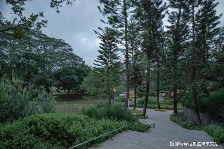 The landscape technique of "distant views within reach" extends the unique internal and external resources of the Songshan Lake area. Through the clear and open trees, one can see the lake.